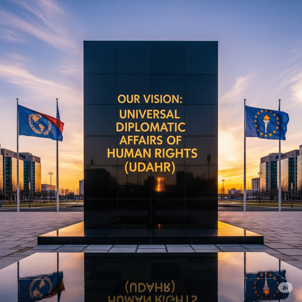 The Universal Diplomatic Affairs of Human Rights (UDAHR) envisions a world where justice, peace, and equity define human society. Guided by the Universal Declaration of Human Rights (1948), the Indian Constitution, and international frameworks, our vision is to ensure that every individual enjoys dignity, equality, and freedom.