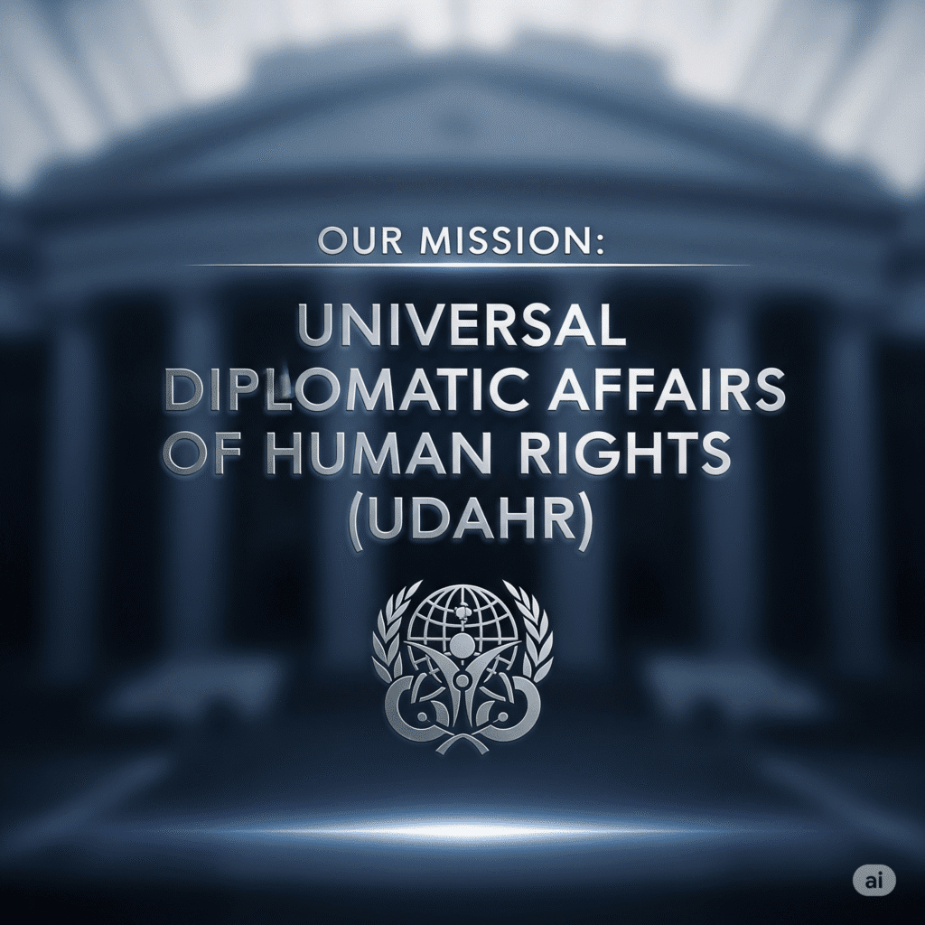 The Universal Diplomatic Affairs of Human Rights (UDAHR), founded on September 11, 2018, is a non-governmental, non-political, and non-profit organization dedicated to advancing justice, equality, and dignity worldwide. Guided by the Indian Constitution, the Universal Declaration of Human Rights (1948), and international treaties, UDAHR works to protect, promote, and enforce human rights at both grassroots and global levels.